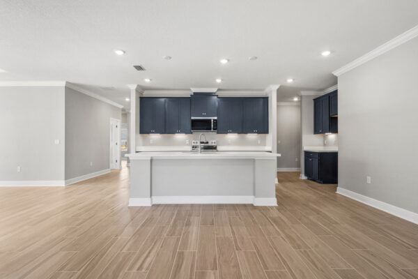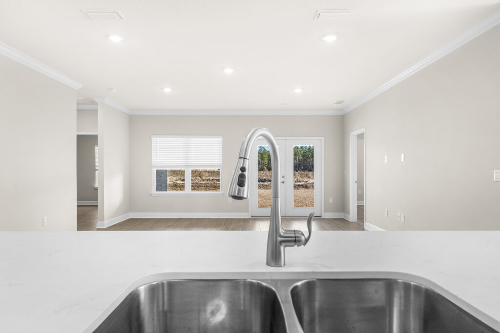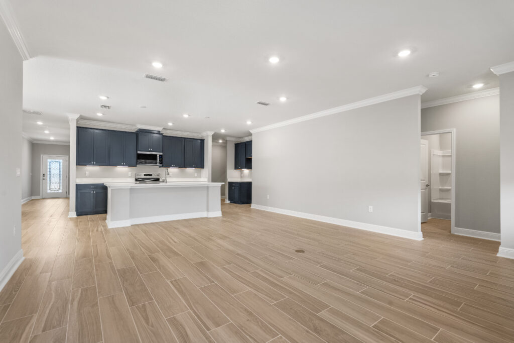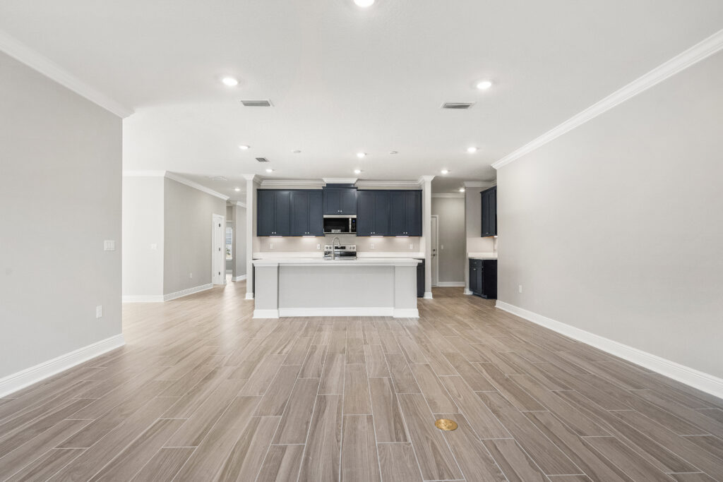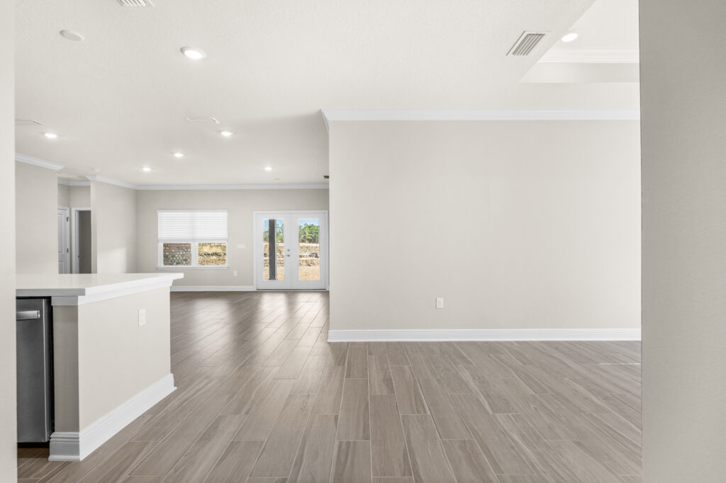 The great room has access to the covered outdoor living space at the back of the home, which extends your living area, creating a perfect setting for entertaining or simply enjoying the Florida lifestyle.