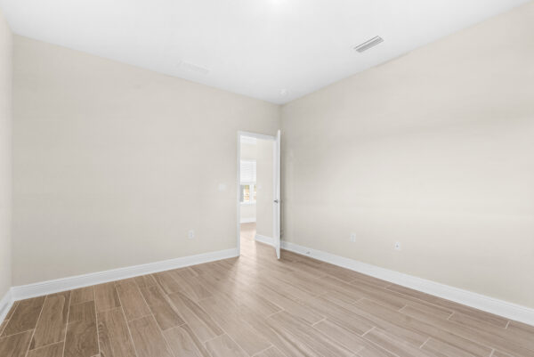 To the side, discover a bedroom and a hallway bathroom, creating an inviting space for guests. Adjacent, a blank canvas wall invites you to showcase your cherished photographs, personalizing your home from the moment you enter. Further along, find a den or flex space – an ideal spot for a home office, creative studio, or a quiet retreat. A hallway closet adds practicality to your daily routine.