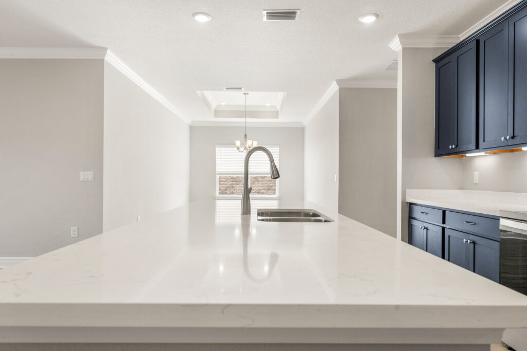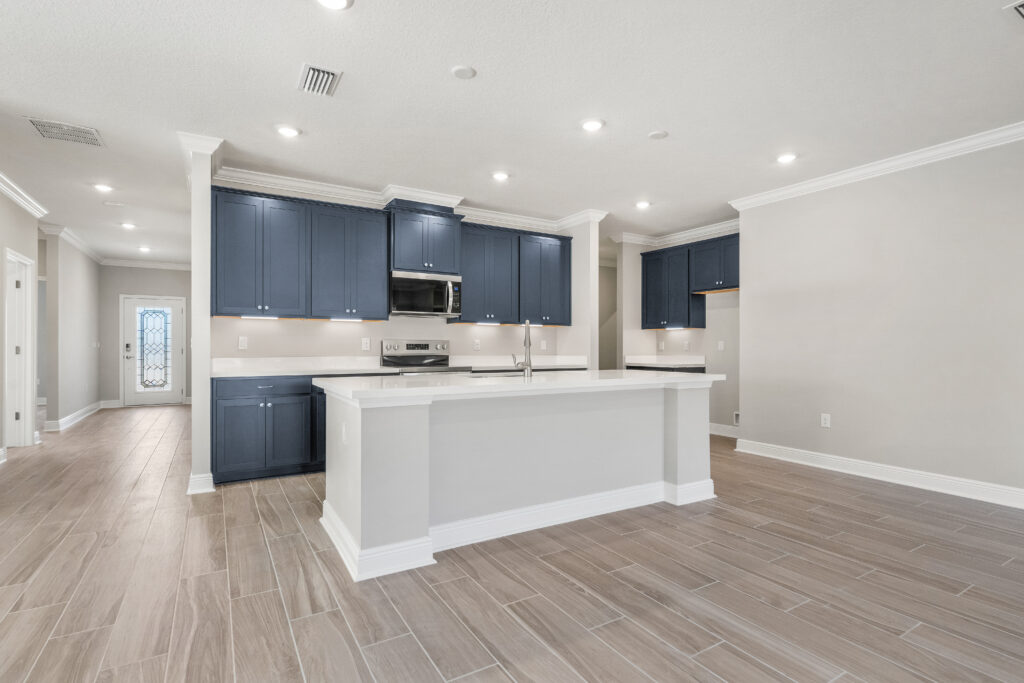 Continue your journey, and the Santa Rosa reveals a dining room open to the kitchen and great room – a seamless blend of elegance and functionality. The kitchen, a culinary enthusiast’s dream, features a central island with a convenient dishwasher and sink. A generously sized pantry ensures you have ample storage space, allowing you to keep your kitchen organized and clutter-free.